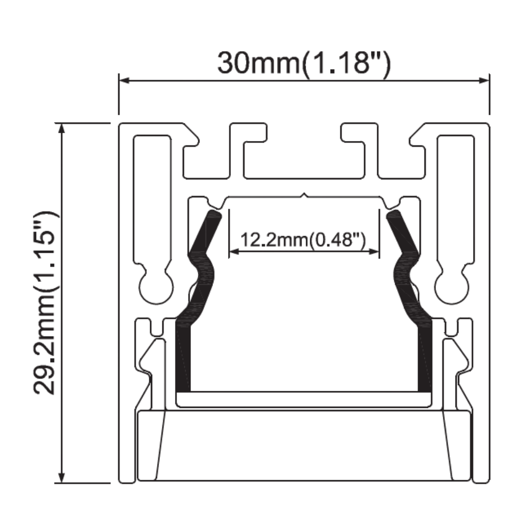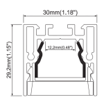 An aluminium linear LED profile (30×29.2mm) designed for modern architectural lighting. Featuring anti-glare optics and flicker-free performance, it delivers controlled, high-quality illumination for interior lighting applications. Suitable for surface-mounted or suspended installations.