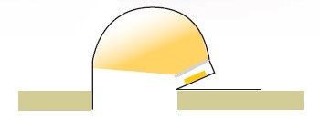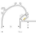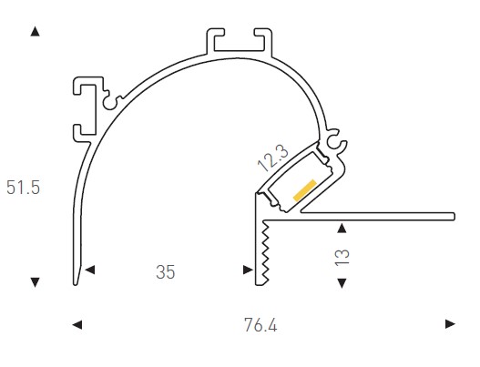 LED round aluminium profile, pmma opal diffuser. Recessed into ceiling and providing continous reflected illuminated cove.