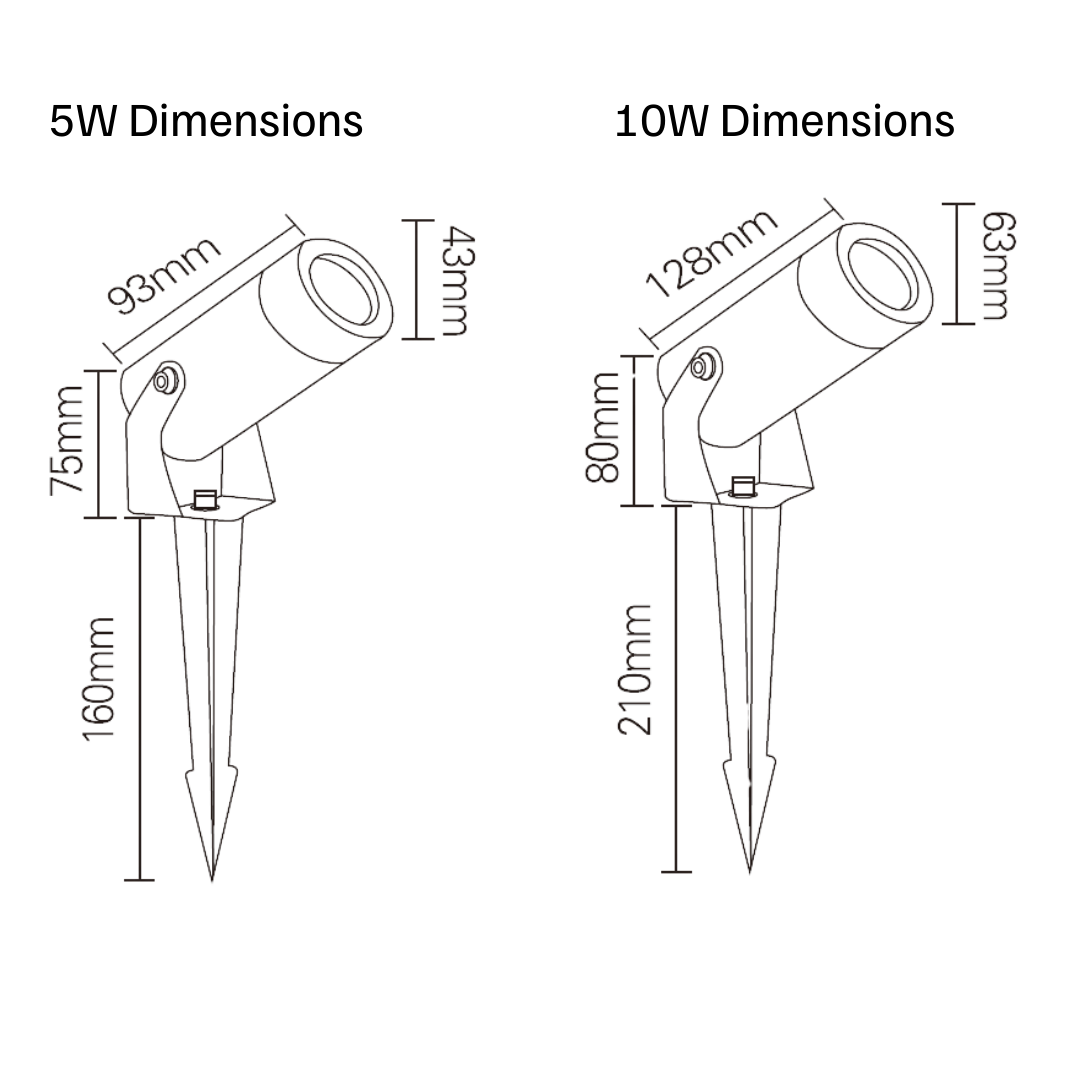 ø43(W) x 93(L) x 75(H)mm (height with spike +160)|ø63(W) x 128(L) x 80(H)mm (height with spike +210)