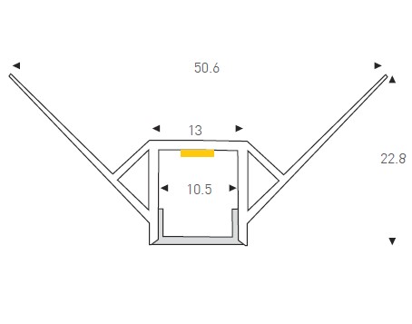 Dimensions: 50.6(W) x 22.8(H)mm x Custom Length
