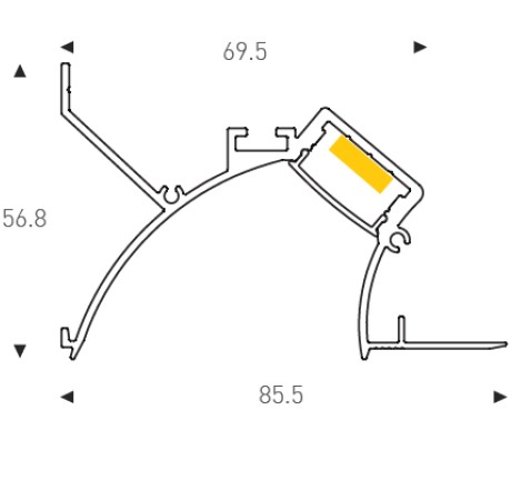 LED mounted in a sleek recessed channel with pmma/opal diffuser, mounting clips and endcaps.