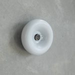 The Mist Wall Light features a gently curved disk that cradles the bulb at its center, evoking a soft, warm glow reminiscent of a sunlit haze.